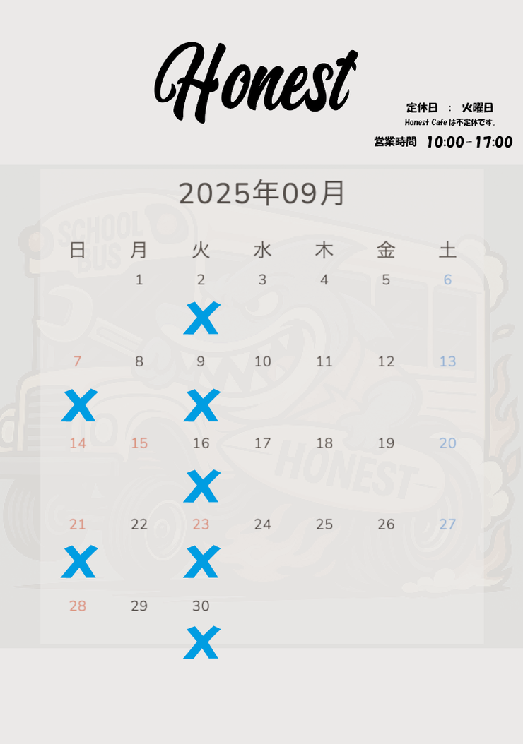 定休日 火曜日 第1、3日曜日 ↓↓↓